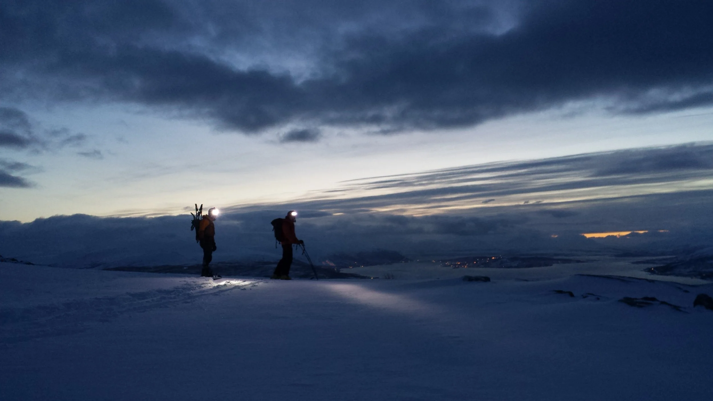 Stortinden (626m) - Fun to ski back down in the dark and put our headtorches to the test