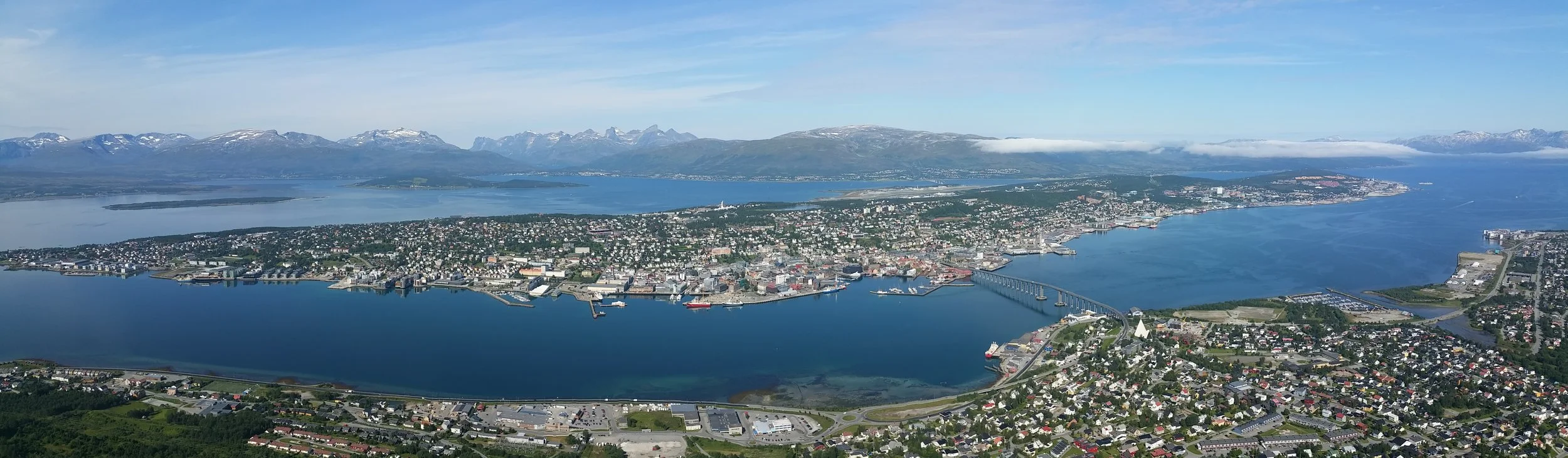 Tromsdalstinden (1238m) - The peak looming in the background during a different trip, no photos taken during the hike due to extreme cloud cover!